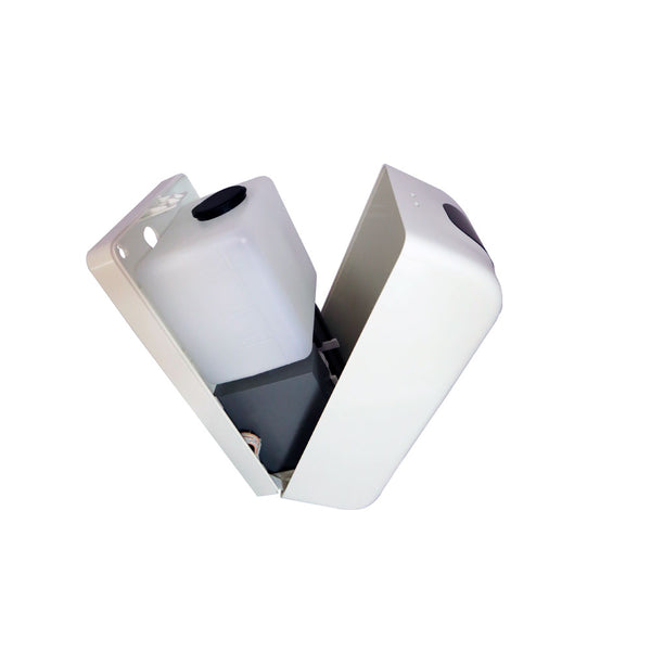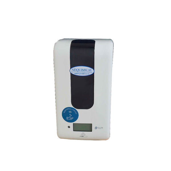 Dispensador automático con sensor infrarrojo y termómetro integrado con visor digital de temperatura.